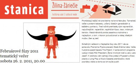 Žilinský večerník, č.9, utorok 1.3.2011, strana 2 Redaktor: Lucia Kubalová   Na Stanici Žilina - Záriečie bolo opäť veselo. Cez víkend sa tu totiž konali Februárové fúzy. Toto nevšedné kabaretné podujatie sa tešilo už tretiemu ročníku.   Pre túto akciu je charakteristická...
